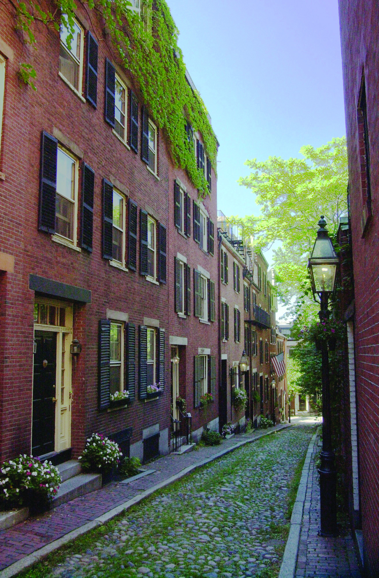 Acorn Street, Beacon Hill, Boston. The historic and luxurious neighborhood of Beacon Hill is full of quaint, cobblestone lanes lined with old brownstone houses. Walking through this area, one almost feels transported to a different time.
