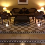 Vintage encaustic tiles covered the floors, armchairs and ceiling fans graced the lobby, lanterns lit the open-air hallways after dark, and bamboo blinds protected verandas from tropical afternoon downpours.
